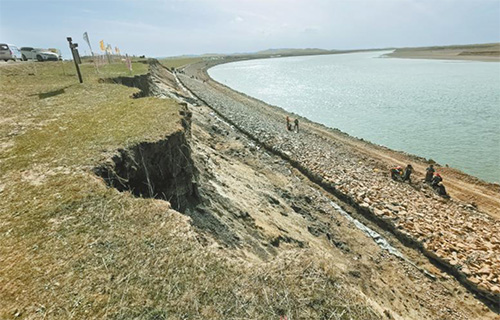 黃河干流若爾蓋段不同程度出現(xiàn)堤岸侵蝕、坍塌等危害。圖為生態(tài)護(hù)岸工程施工現(xiàn)場(chǎng)。為何治?